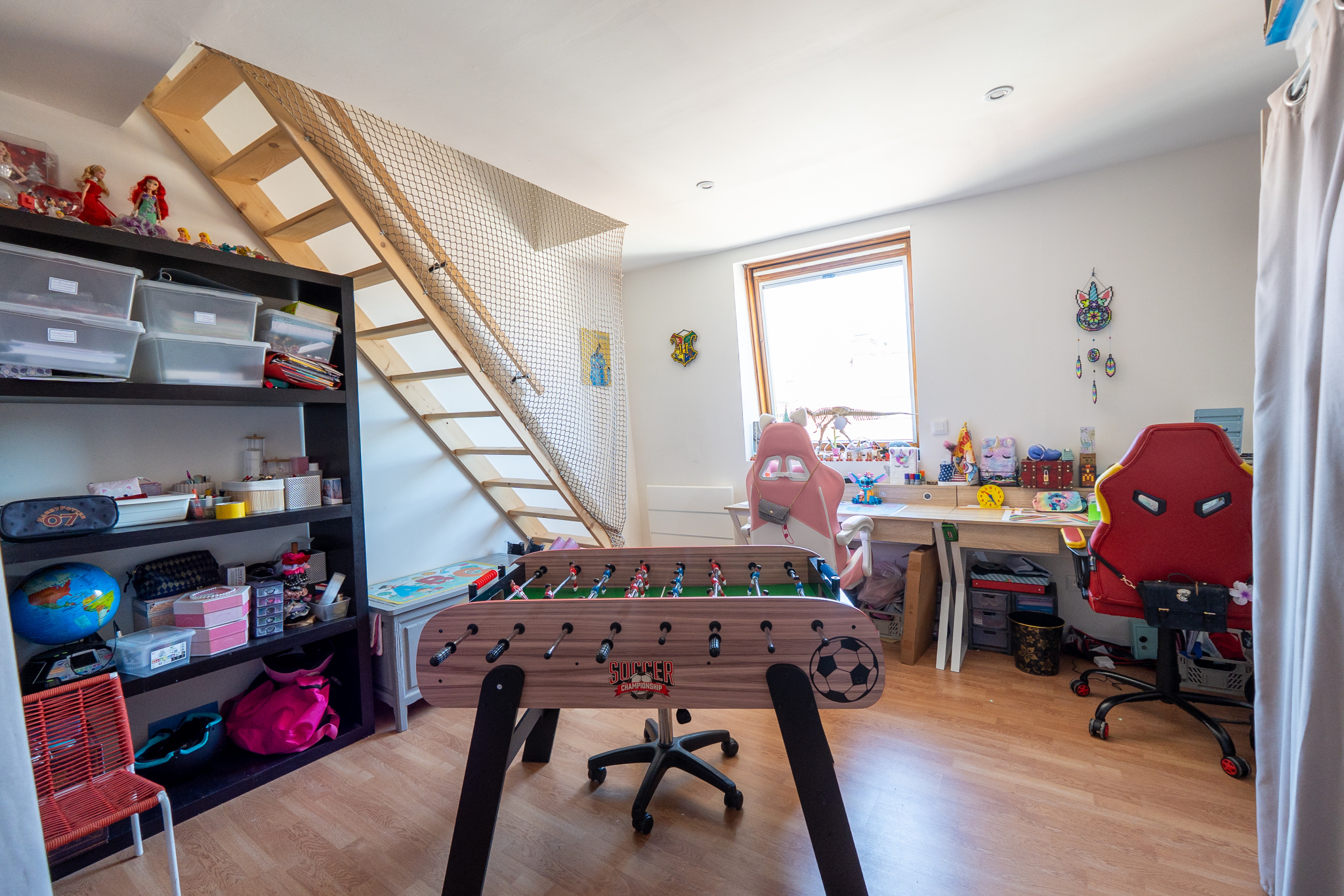 Aux étages supérieur, vous découvrirez 4 chambres, dont une chambre en duplex de 18 m².