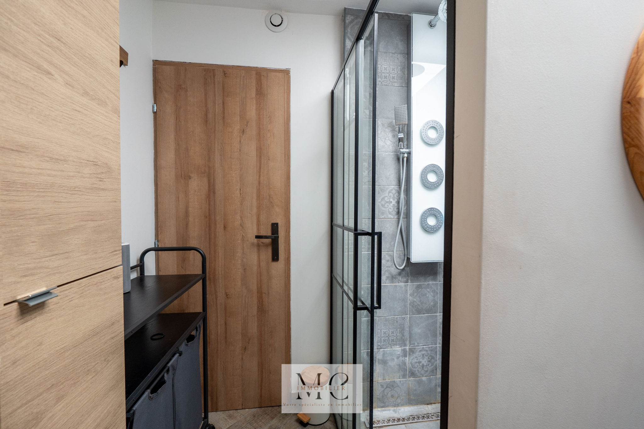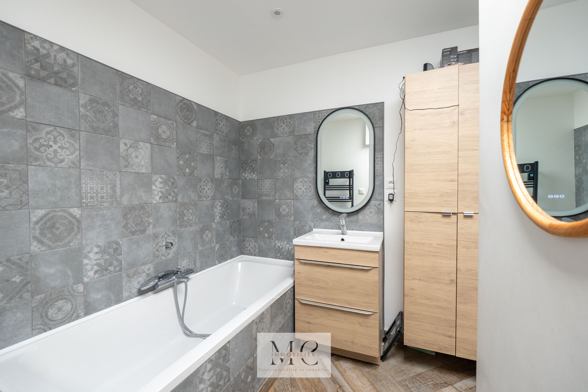 Le rez-de-chaussée comprend également une salle de bain entièrement rénovée, disposant d’une baignoire, d’une douche à l’italienne et d’une vasque, ainsi qu’une buanderie et WC, offrant un confort optimal au quotidien.