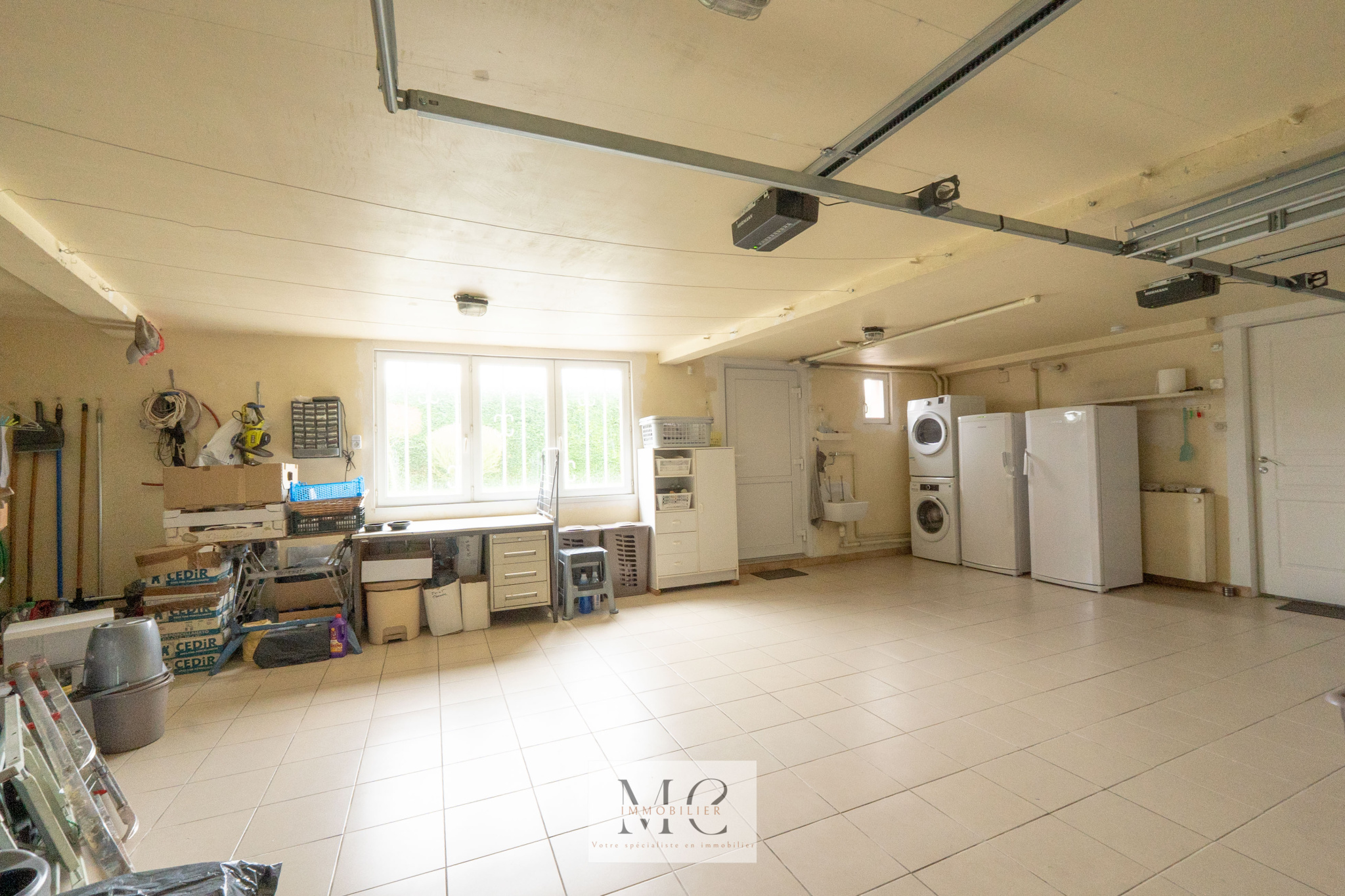 Côté pratique, la maison dispose d'un double garage de 40 m2 entièrement carrelé apportant confort de stationnement et un bel espace de rangement.