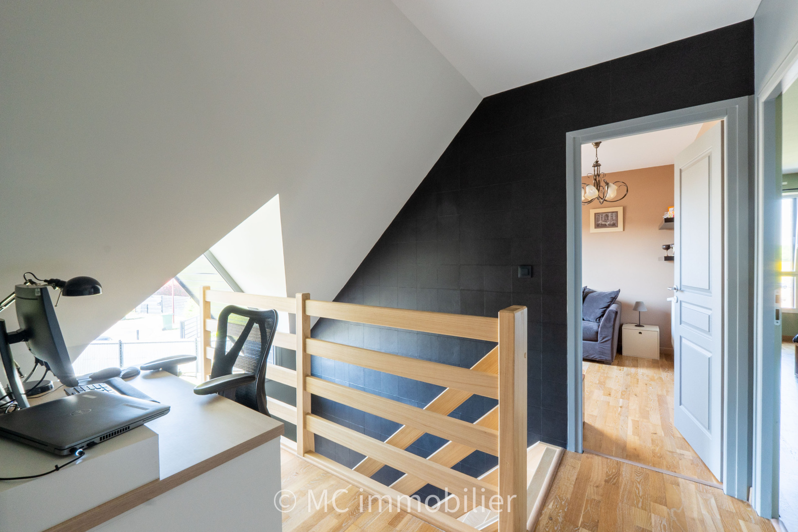 -A l'étage: une mezzanine dessert une suite parentale avec dressing et sa salle de douche privative, deux belles chambres et un espace bureau