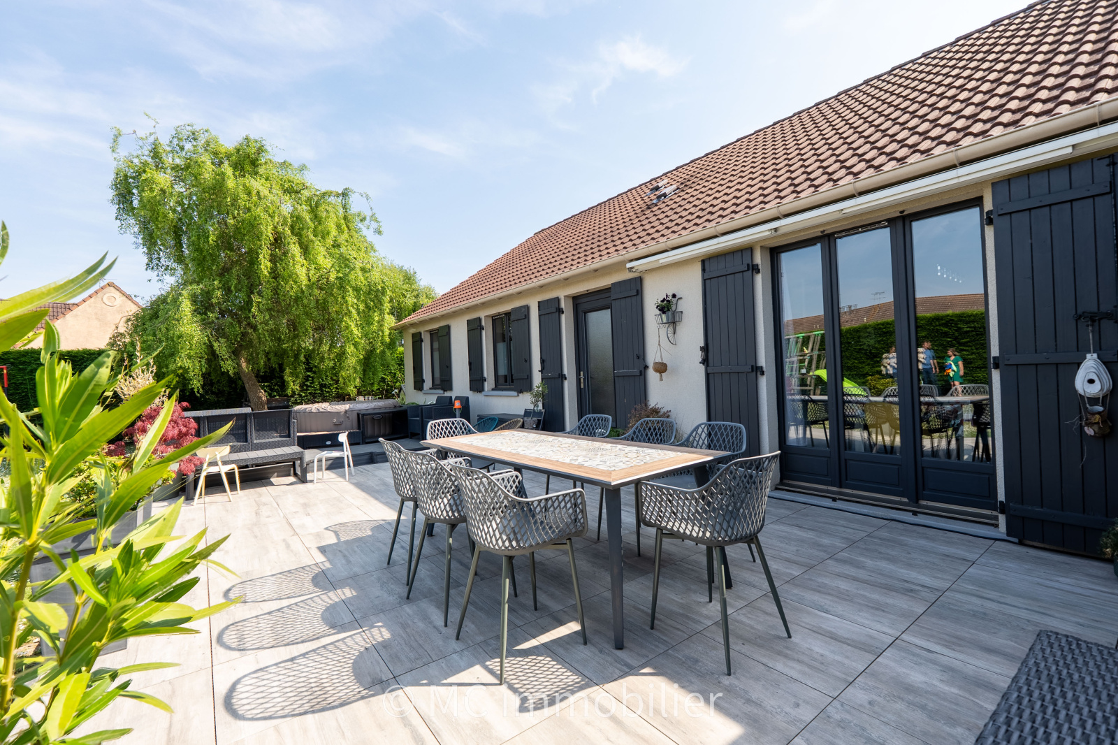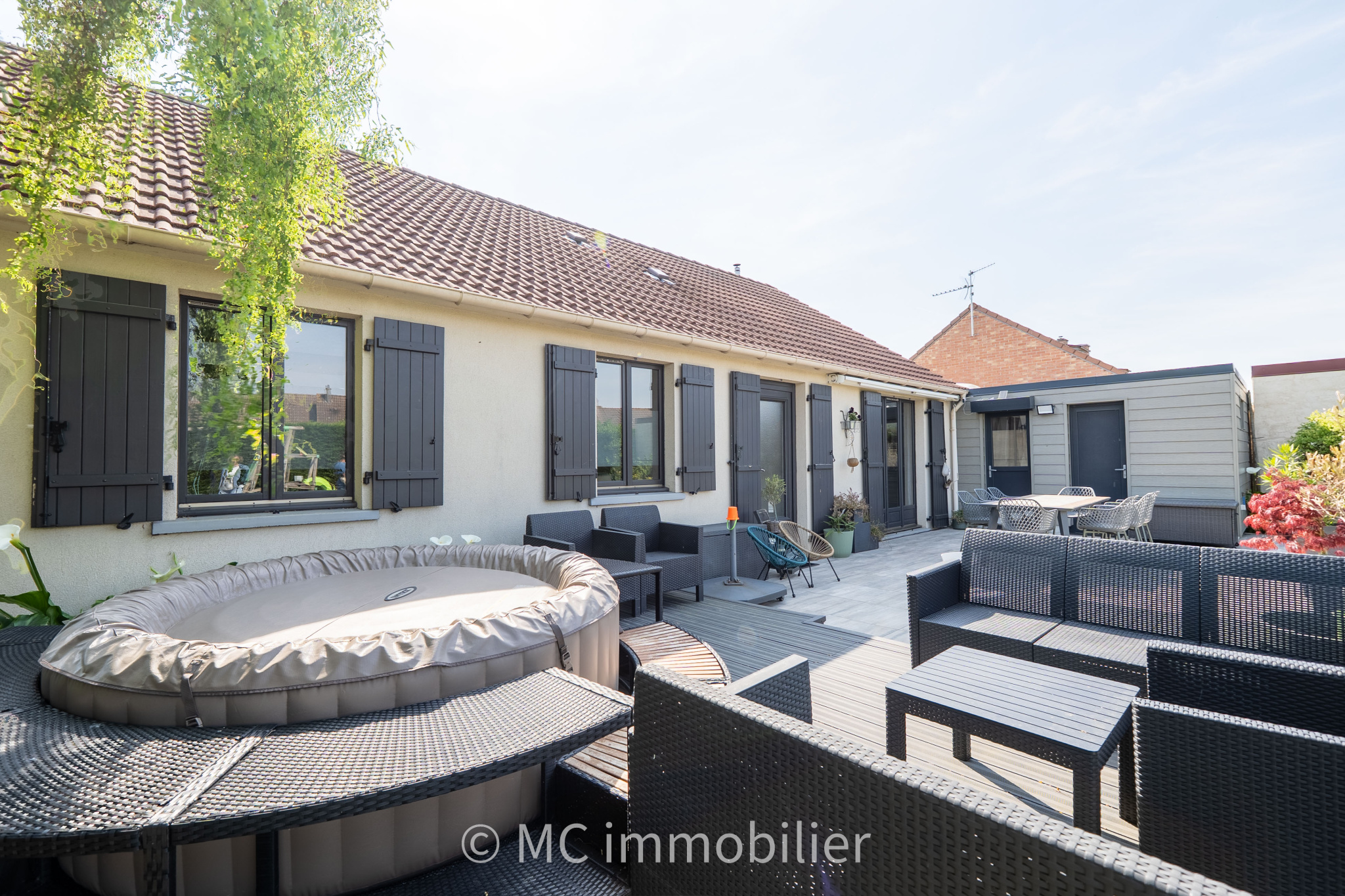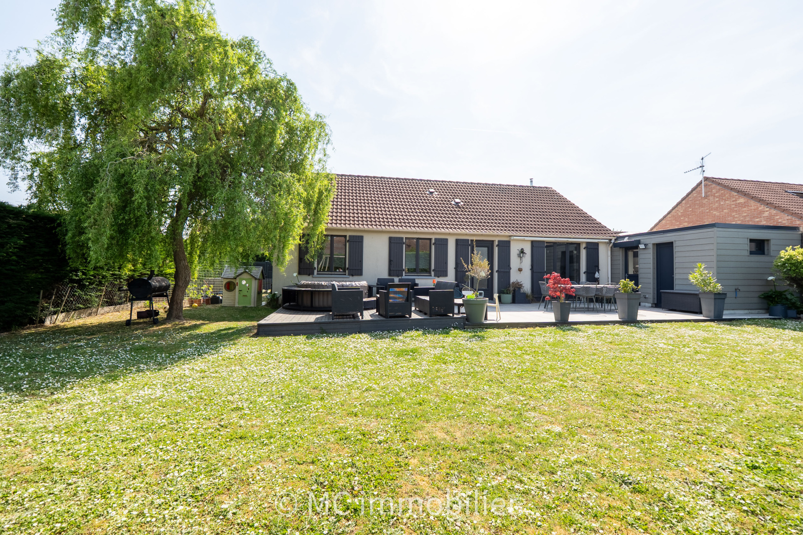 Auchy-les-Mines (62138)Exclusivement chez MC immobilier, magnifique plain pied bâti sur près de 650 m² situé en impasse comprenant un hall d'entrée desservant une belle pièce de vie ouverte sur une cuisine équipée, 4 chambres plus un bureau ou espace dressing, une salle de bain avec baignoire et douche et un grand cellier. A l'extérieur vous pourrez profiter d'une terrasse donnant sur un beau jardin arboré sans vis à vis. Un vrai coup de coeur !