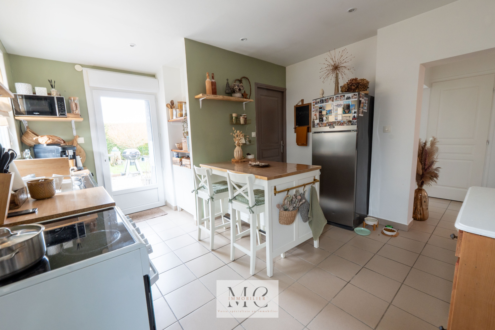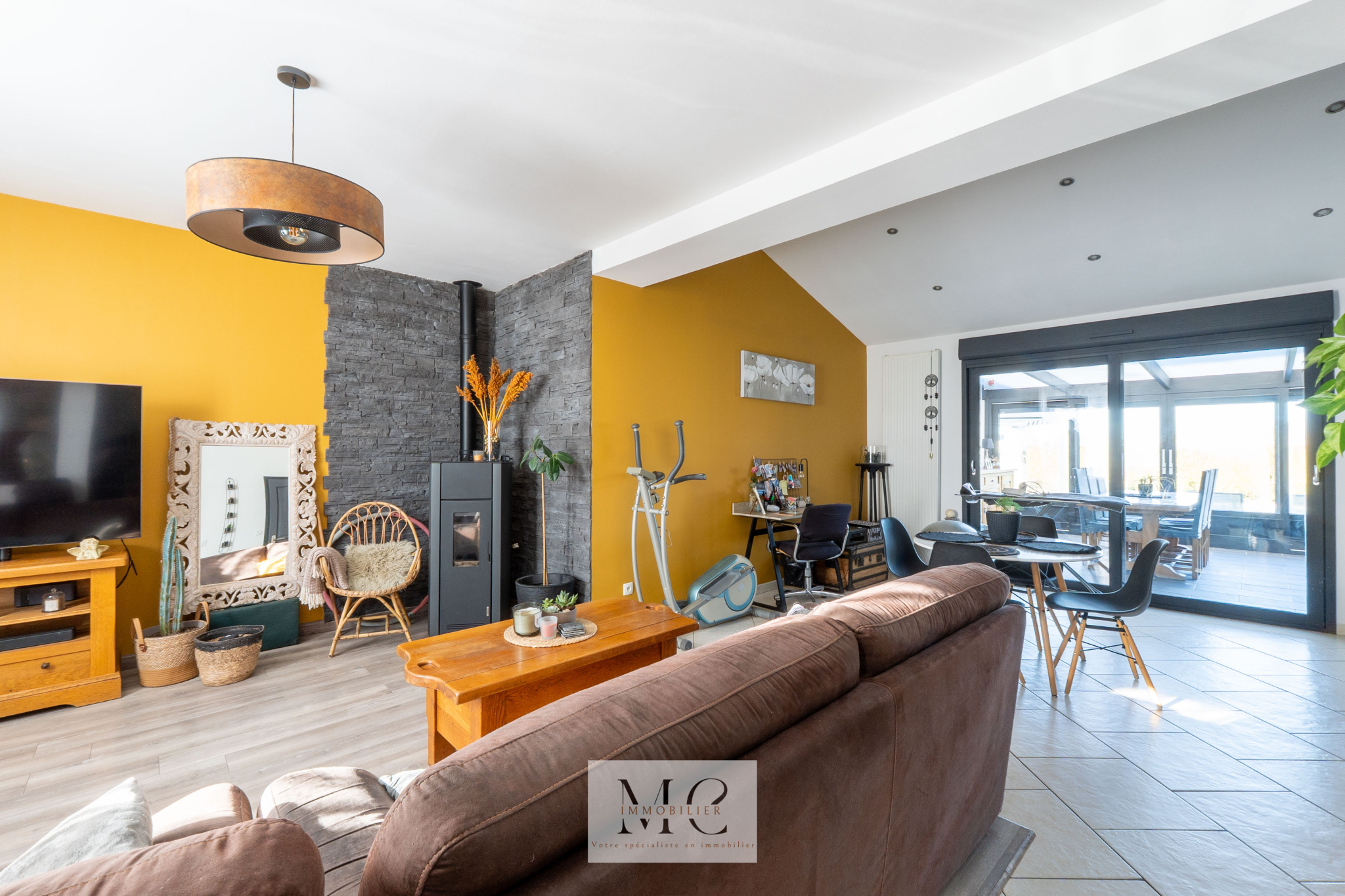 Vous serez séduits par son hall d’entrée, sa belle pièce de vie lumineuse agrémentée d’un poêle à pellets ouverte sur une cuisine équipée.