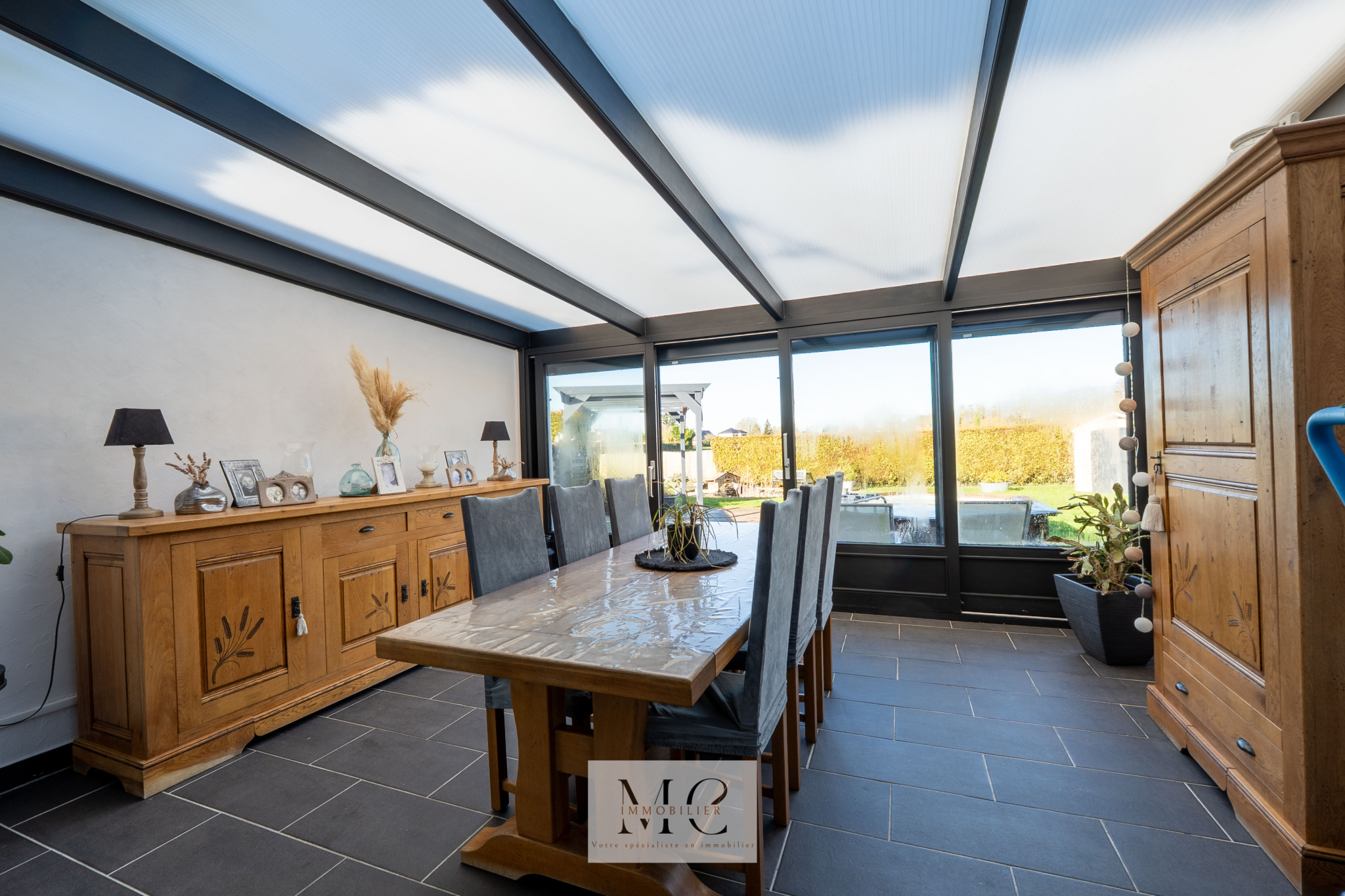 Une véranda prolonge agréablement l’espace de vie vers l’extérieur.