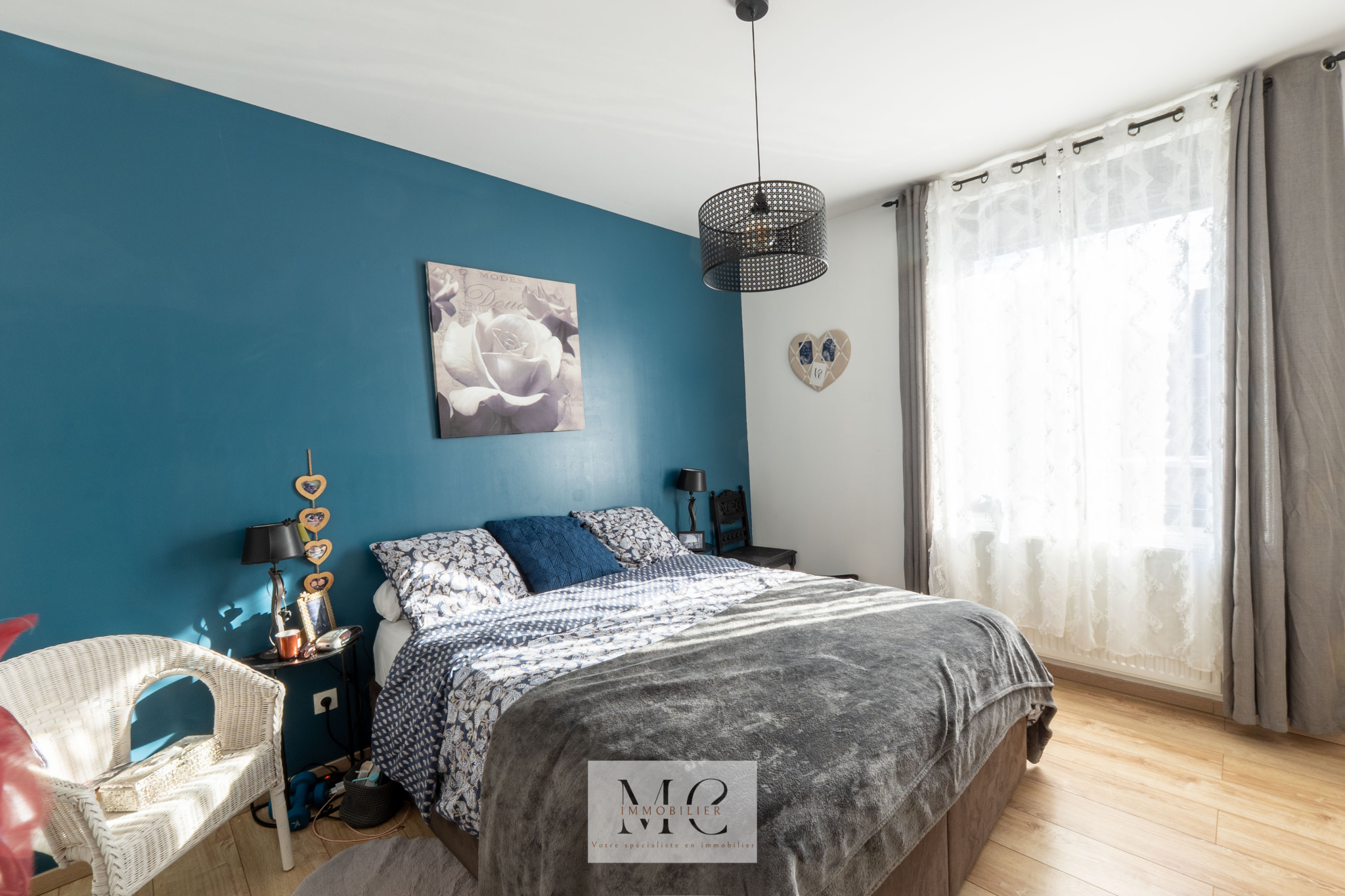 Elle dispose de 2 grandes chambres dont 1 en rez-de-chaussée, d’un bureau, ainsi que d’une salle de bain avec baignoire et douche au RDC.