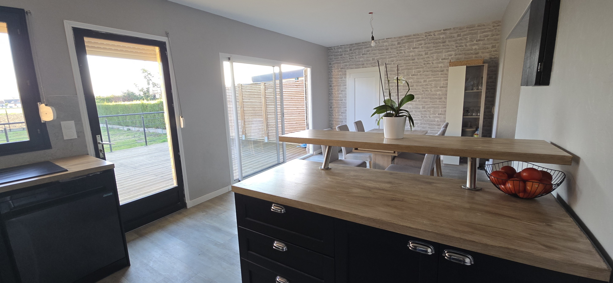 Maison semi individuelle avec extension, 3 chambres, garage, jardin exposé sud avec vue sur champ