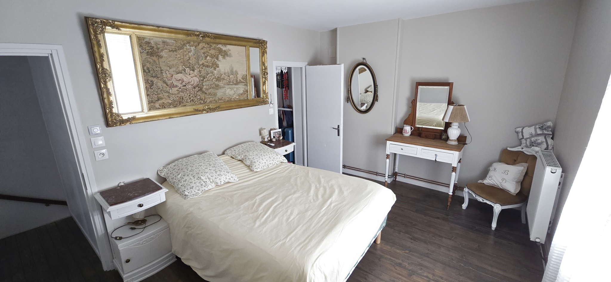 Beau sejour lumineux, une chambre spacieuse avec son dressing, salle de bain, cuisine, beau jardin exposé sud entièrement cloturé, garage et dépendance.