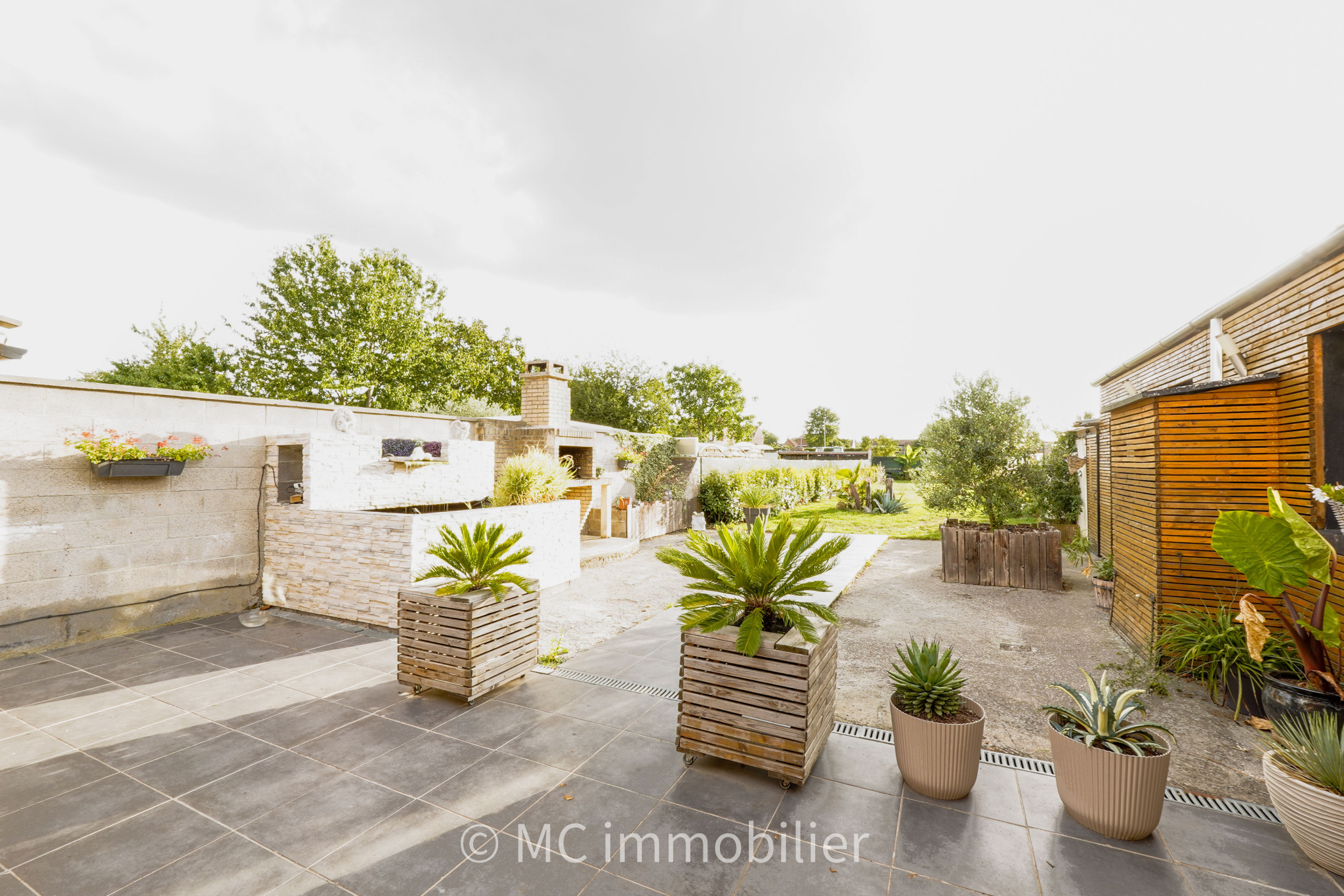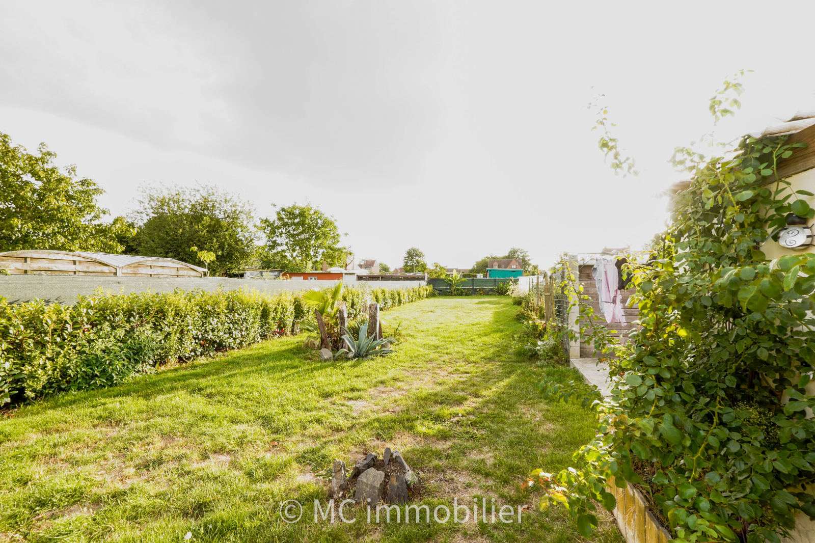 Jardin clos sans vis à vis, exposé ouest , garage et dépendances.